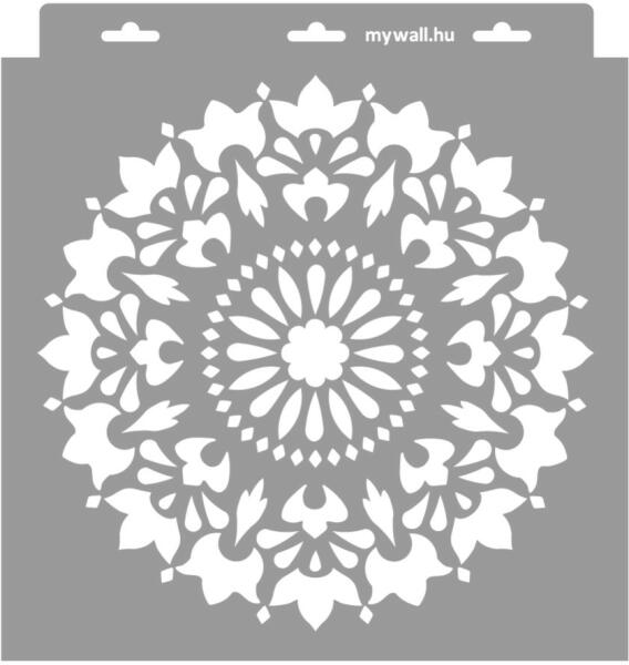Finoman részletgazdag, csipke hatású mandala. Egyik eleméből fríz is készült. Tartós, többször felhasználható áttetsző, rugalmas műanyag stencil. Ívelt felületekhez is használható. Felhasználói tippek: 1. Helyezd a festeni kívánt felületre a stencilt, rögzítsd maszkolószalag segítségével. 2. Kerek stencil-ecsettel vagy szivacsecsettel körkörös mozdulatokkal dolgoz