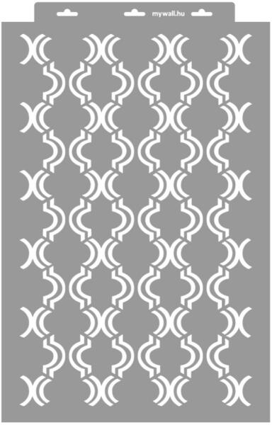 Minden irányban folytatható klasszikus marokkói rácsminta. A nagy léptékű falon, a kisebbek bútoron érvényesülnek leginkább. Tartós, többször felhasználható áttetsző, rugalmas műanyag stencil. Ívelt felületekhez is használható. Felhasználói tippek: 1. Helyezd a festeni kívánt felületre a stencilt, rögzítsd maszkolószalag segítségével. 2. Kerek stencil-ecsettel va