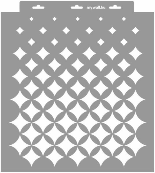 Szép, átmenetes raszteres hatású stencil minta. Tartós, többször felhasználható áttetsző, rugalmas műanyag stencil. Ívelt felületekhez is használható. Felhasználói tippek: 1. Helyezd a festeni kívánt felületre a stencilt, rögzítsd maszkolószalag segítségével. 2. Kerek stencil-ecsettel vagy szivacsecsettel körkörös mozdulatokkal dolgozva vidd fel a festéket. Nagyobb f