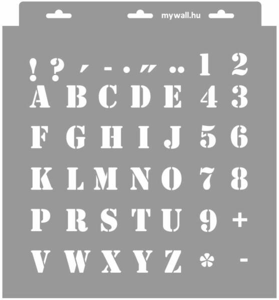 Nyomtatott nagy betűk és számok, mellyel egyedi szöveget tudsz festeni. Tartós, többször felhasználható áttetsző, rugalmas műanyag stencil. Ívelt felületekhez is használható. Felhasználói tippek: 1. Helyezd a festeni kívánt felületre a stencilt, rögzítsd maszkolószalag segítségével. 2. Kerek stencil-ecsettel vagy szivacsecsettel körkörös mozdulatokkal dolgozva vidd fe