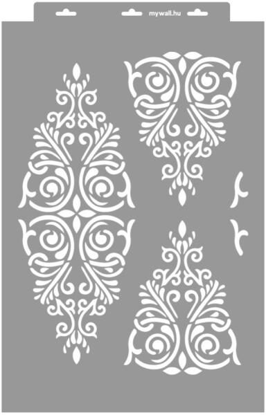 Egzotikus indiai minta. Az illesztési pontoknak köszönhetően minden irányba folytatható. Tartós, többször felhasználható áttetsző, rugalmas műanyag stencil. Ívelt felületekhez is használható. Felhasználói tippek: 1. Helyezd a festeni kívánt felületre a stencilt, rögzítsd maszkolószalag segítségével. 2. Kerek stencil-ecsettel vagy szivacsecsettel körkörös mozdulatokk