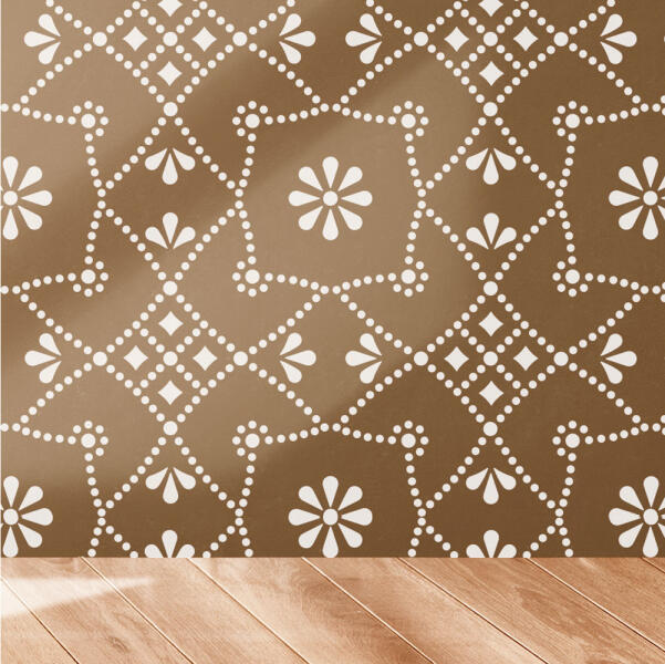 Minden irányban folytatható klasszikus marokkói rácsminta. A nagy léptékűek falon, a kisebbek bútoron érvényesülnek leginkább. Tartós, többször felhasználható áttetsző, rugalmas műanyag stencil. Ívelt felületekhez is használható. Felhasználói tippek: 1. Helyezd a festeni kívánt felületre a stencilt, rögzítsd maszkolószalag segítségével. 2. Kerek stencil-ecsettel
