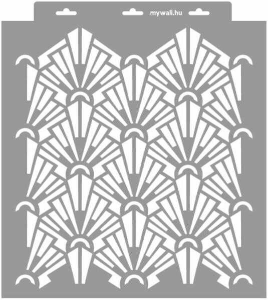 Adj stílust megunt bútoraidnak, teremts fókuszpontot Artdeco stencilünkkel. A stencil Marina Holl inspirációjára készült. Fekete szekrényét a 3D változattal dombormintázta. Tartós, többször felhasználható áttetsző, rugalmas műanyag stencil. Ívelt felületekhez is használható. Felhasználói tippek: 1. Helyezd a festeni kívánt felületre a stencilt, rögzítsd maszkolósza