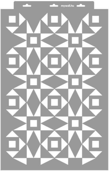Minden irányba folytatható geometrikus mintájú stencil többféle léptékben. Tartós, többször felhasználható áttetsző, rugalmas műanyag stencil. Ívelt felületekhez is használható. Felhasználói tippek: 1. Helyezd a festeni kívánt felületre a stencilt, rögzítsd maszkolószalag segítségével. 2. Kerek stencil-ecsettel vagy szivacsecsettel körkörös mozdulatokkal dolgozva