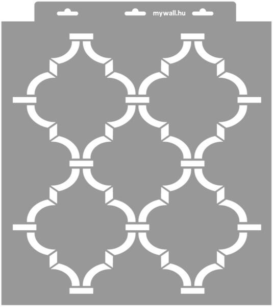 Minden irányban folytatható klasszikus marokkói rácsminta. A nagy léptékűek falon, a kisebbek bútoron érvényesülnek leginkább. Tartós, többször felhasználható áttetsző, rugalmas műanyag stencil. Ívelt felületekhez is használható. Felhasználói tippek: 1. Helyezd a festeni kívánt felületre a stencilt, rögzítsd maszkolószalag segítségével. 2. Kerek stencil-ecsettel