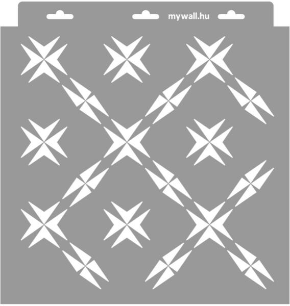 Minden irányban folytatható különböző léptékű stilizált csillagminta. Tartós, többször felhasználható áttetsző, rugalmas műanyag stencil. Ívelt felületekhez is használható. Felhasználói tippek: 1. Helyezd a festeni kívánt felületre a stencilt, rögzítsd maszkolószalag segítségével. 2. Kerek stencil-ecsettel vagy szivacsecsettel körkörös mozdulatokkal dolgozva vid