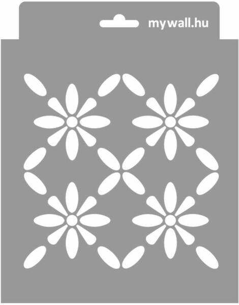 Minden irányba folytatható ez a stilizált virágmező. A 3. kép Holl Marina workshopján készült. Tartós, többször felhasználható áttetsző, rugalmas műanyag stencil. Ívelt felületekhez is használható. Felhasználói tippek: 1. Helyezd a festeni kívánt felületre a stencilt, rögzítsd maszkolószalag segítségével. 2. Kerek stencil-ecsettel vagy szivacsecsettel körkörös mo