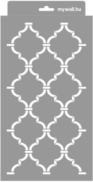 Minden irányban folytatható klasszikus marokkói rácsminta. A nagy léptékűek falon, a kisebbek bútoron érvényesülnek leginkább. Tartós, többször felhasználható áttetsző, rugalmas műanyag stencil. Ívelt felületekhez is használható. Felhasználói tippek: 1. Helyezd a festeni kívánt felületre a stencilt, rögzítsd maszkolószalag segítségével. 2. Kerek stencil-ecsettel