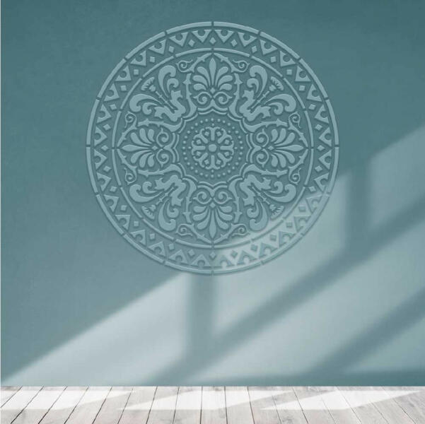 Klasszikus rozetta stukkókat idéző minta. Tartós, többször felhasználható áttetsző, rugalmas műanyag stencil. Ívelt felületekhez is használható. Felhasználói tippek: 1. Helyezd a festeni kívánt felületre a stencilt, rögzítsd maszkolószalag segítségével. 2. Kerek stencil-ecsettel vagy szivacsecsettel körkörös mozdulatokkal dolgozva vidd fel a festéket. Nagyobb felület