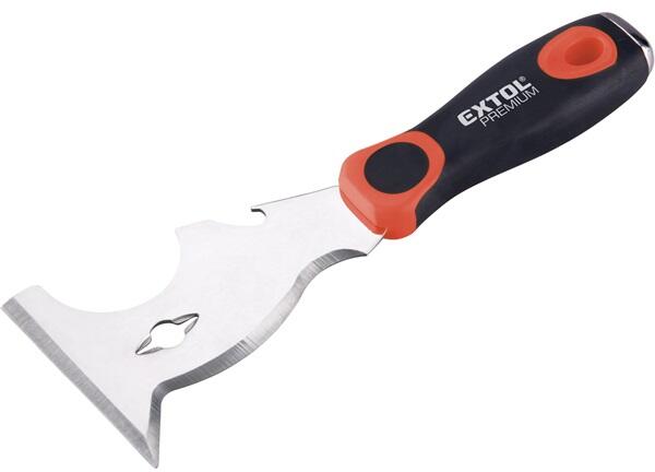 ""Kiválló minőségű, merev, rozsdamentes acélból (#420) készült kaparó felületttel rendelkezik a spakli. Puha TPR gumi bevonatú fogó rész, melynek vége fém, ezért üthető. Festék levésésére alkalmas Funkciók: szeghúzó, sörnyító. ""