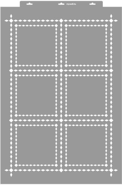 A könnyed és légies rácsos motívum használható a faldekorációban kitöltő elemként. Bármelyik stílushoz könnyedén alkalmazható, és a minta minden irányban folytatható. Tartós, többször felhasználható áttetsző, rugalmas műanyag stencil. Ívelt felületekhez is használható. Felhasználói tippek: 1. Helyezd a festeni kívánt felületre a stencilt, rögzítsd maszkolósz