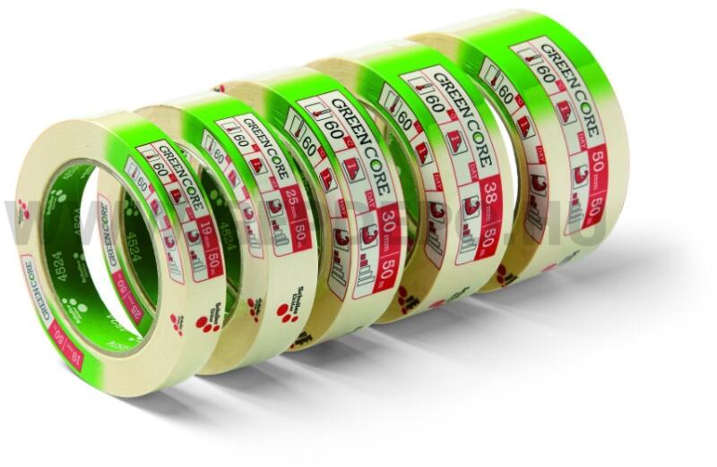Schuller Eh‘klar GREEN Core festőszalag - 38 mm x 50 m GREEN CORE finoman kreppelt ragasztószalag közepes tapadóerővel. Sima felületekre. Egyenként zsugorozva, nyomott fóliával. Bevonatolt papír festőszalag. A festőszalag megfelelő választás minden festőmunkához. Minden szokásos festékhez és lakkhoz/zománchoz alkalmazható, kézzel téphető és maradvány nélkül visszasze