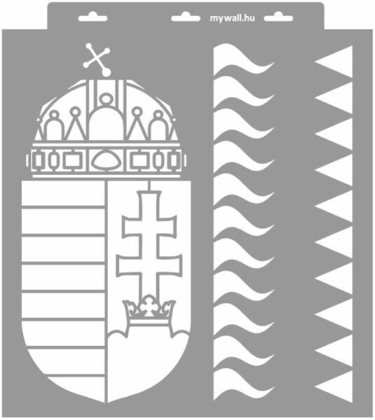 Magyarország címere és Szent korona stencilek. Iskolai projektek, ünnepi megemlékezések hasznos eszköze lehet. Tartós, többször felhasználható áttetsző, rugalmas műanyag stencil. Ívelt felületekhez is használható. Felhasználói tippek: 1. Helyezd a festeni kívánt felületre a stencilt, rögzítsd maszkolószalag segítségével. 2. Kerek stencil-ecsettel vagy szivacsecsettel
