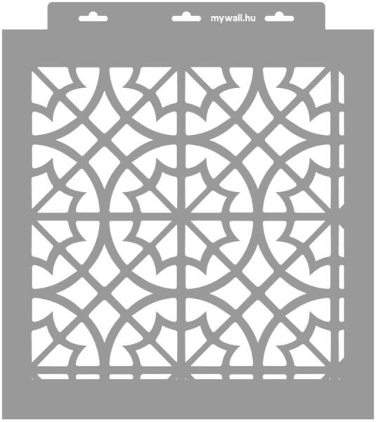 Minden irányban folytatható minta. A nagy léptékű falon, a kisebbek bútoron érvényesülnek. Tartós, többször felhasználható áttetsző, rugalmas műanyag stencil. Ívelt felületekhez is használható. Felhasználói tippek: 1. Helyezd a festeni kívánt felületre a stencilt, rögzítsd maszkolószalag segítségével. 2. Kerek stencil-ecsettel vagy szivacsecsettel körkörös mozdul