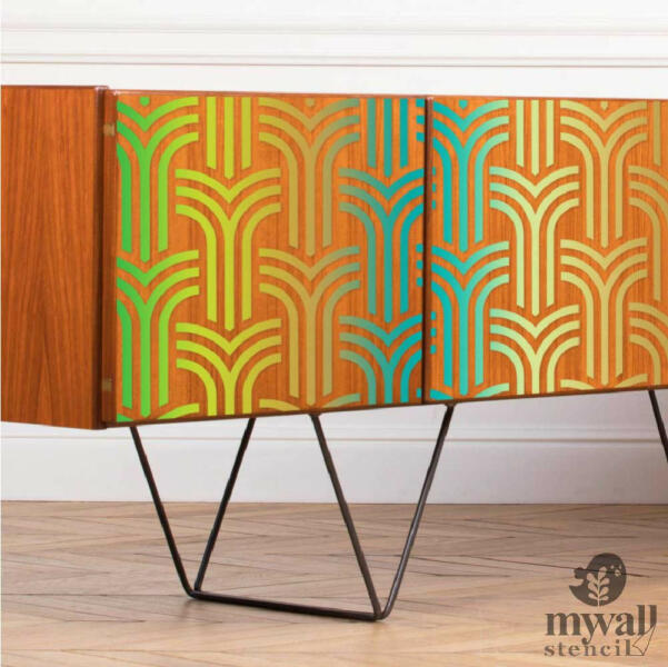 Minden irányba folytatható elegáns íves minta (nem csak) az artdeco szerelmeseinek. Tartós, többször felhasználható áttetsző, rugalmas műanyag stencil. Ívelt felületekhez is használható. Felhasználói tippek: 1. Helyezd a festeni kívánt felületre a stencilt, rögzítsd maszkolószalag segítségével. 2. Kerek stencil-ecsettel vagy szivacsecsettel körkörös mozdulatokkal dolg