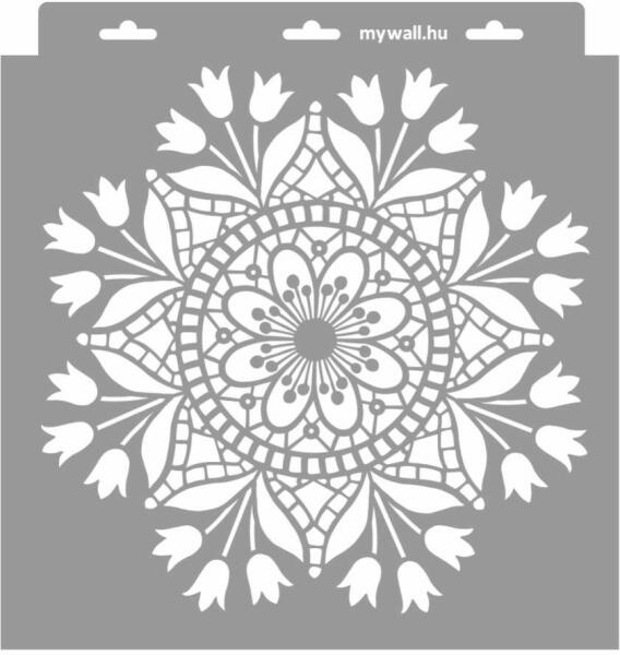 Hagyományos vert csipke motívum egy kis tavaszias tulipán díszítéssel. Húsvéti kiegészítők dekorálására is tökéletes. Tartós, többször felhasználható áttetsző, rugalmas műanyag stencil. Ívelt felületekhez is használható. Felhasználói tippek: 1. Helyezd a festeni kívánt felületre a stencilt, rögzítsd maszkolószalag segítségével. 2. Kerek stencil-ecsettel vagy