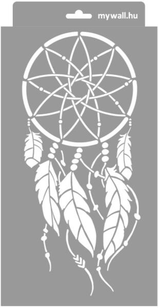 Az álomfogó - vagy álomcsapda - az ősi indián kultúrából származik. Hitük szerint az ágy fölé akasztva megvédi a gyermekeket a rossz álmoktól. De a lakás bármely más helyiségében jól mutat. Tartós, többször felhasználható áttetsző, rugalmas műanyag stencil. Ívelt felületekhez is használható. Felhasználói tippek: 1. Helyezd a festeni kívánt felületre a stencil
