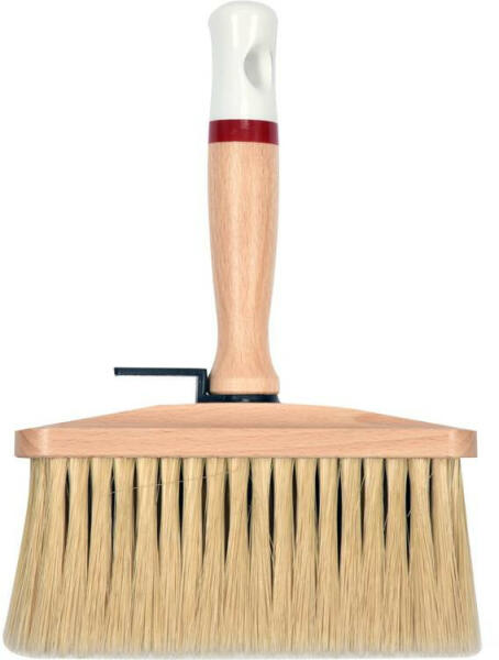 Fából készült hosszúnyelű ecset acél szorítópánttal. Ideális sarkok, élek festésére de lehet használni törékeny tárgyak portalanítására is.