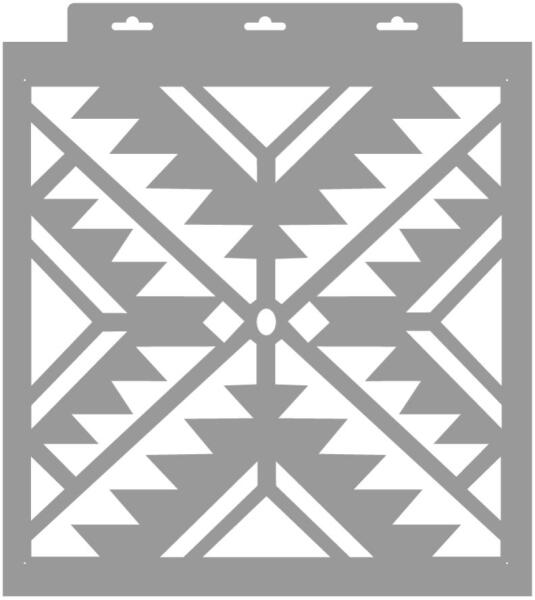 Mexikói népi mintázatokat idéz ez a stencil minta. Bútorokon kívül akár egy rustikus juta szőnyegen is használható. Tartós, többször felhasználható áttetsző, rugalmas műanyag stencil. Ívelt felületekhez is használható. Felhasználói tippek: 1. Helyezd a festeni kívánt felületre a stencilt, rögzítsd maszkolószalag segítségével. 2. Kerek stencil-ecsettel vagy szivacs