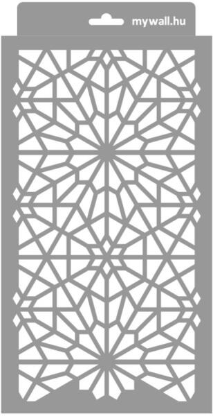 Minden irányban folytatható minta. A nagy léptékű falon, a kisebbek bútoron érvényesülnek. Tartós, többször felhasználható áttetsző, rugalmas műanyag stencil. Ívelt felületekhez is használható. Felhasználói tippek: 1. Helyezd a festeni kívánt felületre a stencilt, rögzítsd maszkolószalag segítségével. 2. Kerek stencil-ecsettel vagy szivacsecsettel körkörös mozdul