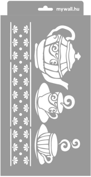 Kedves kis csészikék és teáskannák sorakoznak ezeken a stencileken. Akár teljes konyhafalon, abroszon, konyharuhán vagy kötényen használod, biztosan nagy sikere lesz. Tartós, többször felhasználható áttetsző, rugalmas műanyag stencil. Ívelt felületekhez is használható. Felhasználói tippek: 1. Helyezd a festeni kívánt felületre a stencilt, rögzítsd maszkolószalag segí