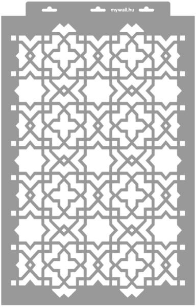 Ez a klasszikus marokkói mintájú stencil egy elegáns és stílusos eszköz, amely lehetővé teszi, hogy gyönyörű mintákat hozz létre falakon, bútorokon, textíliákon vagy bármilyen más felületen. A minta finom részletei és összetett geometriai mintái kellemes érzést adnak, és valóban egyedi megjelenést kölcsönöznek a belső térnek. Tartós, többször felhasználható