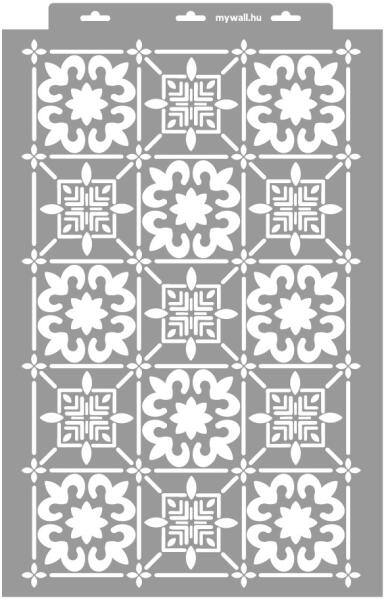 Különleges csempeminta azoknak, akik szeretnek eltérni a megszokottól. Ennek a stencilnek egyedi bája az afrikai motívumok játéka. Tartós, többször felhasználható áttetsző, rugalmas műanyag stencil. Ívelt felületekhez is használható. Felhasználói tippek: 1. Helyezd a festeni kívánt felületre a stencilt, rögzítsd maszkolószalag segítségével. 2. Kerek stencil-ecsettel