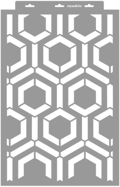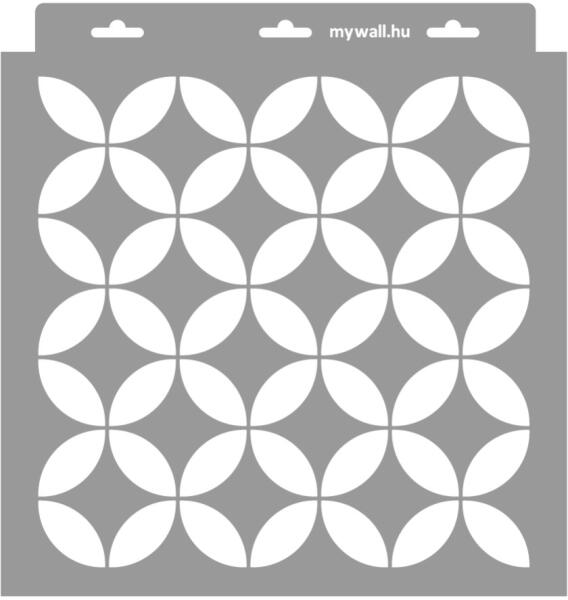 Minden irányba folytatható geometrikus mintájú stencil többféle léptékben. Tartós, többször felhasználható áttetsző, rugalmas műanyag stencil. Ívelt felületekhez is használható. Felhasználói tippek: 1. Helyezd a festeni kívánt felületre a stencilt, rögzítsd maszkolószalag segítségével. 2. Kerek stencil-ecsettel vagy szivacsecsettel körkörös mozdulatokkal dolgozva