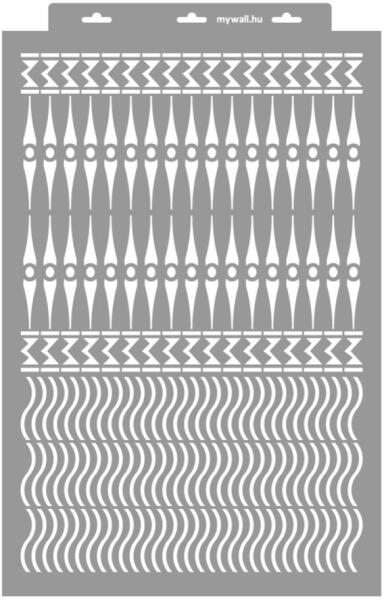 Ez a stencil minta bármelyik Maori stencil tökéletes kiegészítője lehet. Egyedi, egzotikus hangulatot teremthetsz vele otthonodban. Használhatod bútorra, falra, lakástextilre egyaránt. Tartós, többször felhasználható áttetsző, rugalmas műanyag stencil. Ívelt felületekhez is használható. Felhasználói tippek: 1. Helyezd a festeni kívánt felületre a stencilt, rögzítsd mas