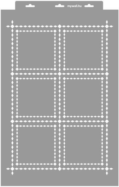 A könnyed és légies rácsos motívum használható a faldekorációban kitöltő elemként. Bármelyik stílushoz könnyedén alkalmazható, és a minta minden irányban folytatható. Tartós, többször felhasználható áttetsző, rugalmas műanyag stencil. Ívelt felületekhez is használható. Felhasználói tippek: 1. Helyezd a festeni kívánt felületre a stencilt, rögzítsd maszkolósz