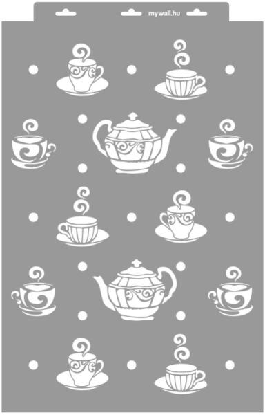 Kedves kis csészikék és teáskannák sorakoznak ezeken a stencileken. Akár teljes konyhafalon, abroszon, konyharuhán vagy kötényen használod, biztosan nagy sikere lesz. Tartós, többször felhasználható áttetsző, rugalmas műanyag stencil. Ívelt felületekhez is használható. Felhasználói tippek: 1. Helyezd a festeni kívánt felületre a stencilt, rögzítsd maszkolószalag segí