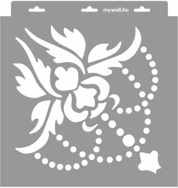 Klasszikus barokk minta, kissé újragondolva. Számomra a kristály csillárok hangulatát idézi. Tartós, többször felhasználható áttetsző, rugalmas műanyag stencil. Ívelt felületekhez is használható. Felhasználói tippek: 1. Helyezd a festeni kívánt felületre a stencilt, rögzítsd maszkolószalag segítségével. 2. Kerek stencil-ecsettel vagy szivacsecsettel körkörös mozdul