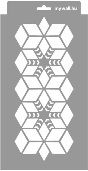 A Diagonal 08 stencil egy minimalista és geometrikus design, amely inspirációját a klasszikus csempemintáktól veszi. Az egyenes vonalak és szögletes formák tökéletesen illeszkednek egymáshoz, hogy egy szép és letisztult mintát hozzanak létre, amely tökéletesen alkalmas dekorációs célokra. Tartós, többször felhasználható áttetsző, rugalmas műanyag stencil. Ívelt felül