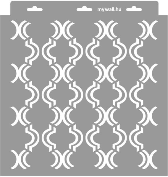 Minden irányban folytatható klasszikus marokkói rácsminta. A nagy léptékű falon, a kisebbek bútoron érvényesülnek leginkább. Tartós, többször felhasználható áttetsző, rugalmas műanyag stencil. Ívelt felületekhez is használható. Felhasználói tippek: 1. Helyezd a festeni kívánt felületre a stencilt, rögzítsd maszkolószalag segítségével. 2. Kerek stencil-ecsettel va