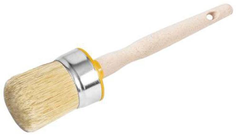 Fából készült hosszúnyelű ecset acél szorítópánttal. Ideális sarkok, élek festésére de lehet használni törékeny tárgyak portalanítására is.