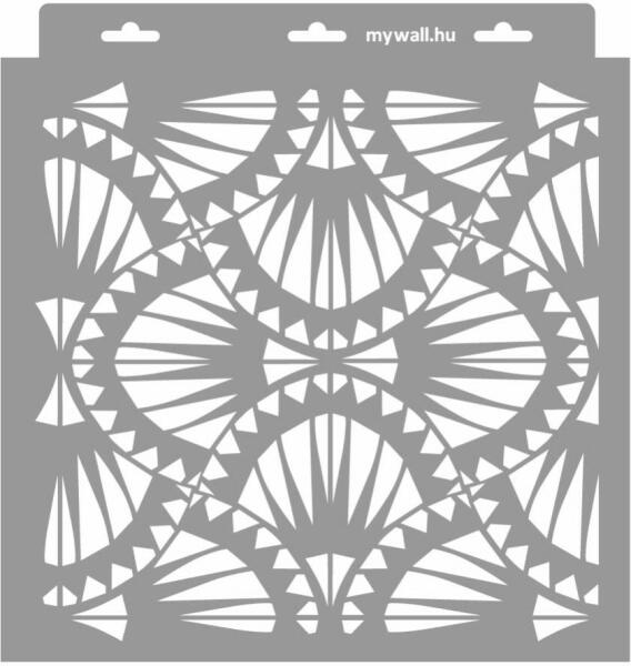 Minden irányba folytatható elegáns legyező minta, (nem csak) az artdeco szerelmeseinek. Tartós, többször felhasználható áttetsző, rugalmas műanyag stencil. Ívelt felületekhez is használható. Felhasználói tippek: 1. Helyezd a festeni kívánt felületre a stencilt, rögzítsd maszkolószalag segítségével. 2. Kerek stencil-ecsettel vagy szivacsecsettel körkörös mozdulatokkal