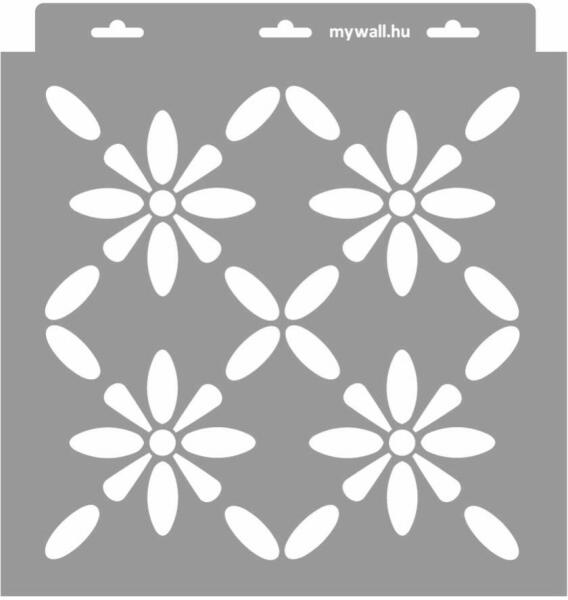 Minden irányba folytatható ez a stilizált virágmező. A 3. kép Holl Marina workshopján készült. Tartós, többször felhasználható áttetsző, rugalmas műanyag stencil. Ívelt felületekhez is használható. Felhasználói tippek: 1. Helyezd a festeni kívánt felületre a stencilt, rögzítsd maszkolószalag segítségével. 2. Kerek stencil-ecsettel vagy szivacsecsettel körkörös mo