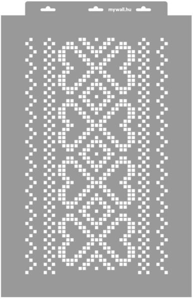 A szabolcsi keresztszemes hímzésminták egyik legszebb életfa motívumát festheted meg ezzel a stencillel. A csarodai pacsirtás falvédőhöz tartozó minta ez, de önállóan is megállja helyét. A dupla szívsor változat szőttesre emlékeztető motívum. Modern mai otthonokban is méltó tisztelettel adózhatunk ezzel az újragondolt magyar díszítőtechnikával. Festő, és 3D változa