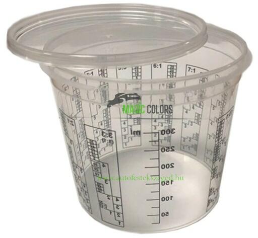 Skálázott, oldószerálló műanyag keverőedény fedővel, alkalmas oldószeres és vizes bázisú festékek keveréséhez. A CC E385 Skálázott keverőedény + Fedél (0,385 L) professzionális minőségű, oldószerálló műanyagból készült, így kiválóan használható bármilyen festék, akár oldószeres, akár vizes bázisú, pontos és tiszta keverésére. A keverőedény oldalán