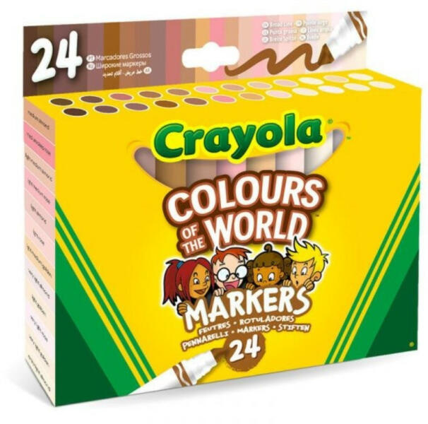 A Crayola - A világ színe 24 db-os filctollkészlet nagyszerű kreatív időtöltést kínál minden csemetének, aki imád rajzolni, színezni és papírra szeretné vetni képzeletét, mert sok-sok különböző színű, bőr árnyalatú filcet tartalmaz. Amennyiben gyermeke szeret alkotni, vagy éppen Ön inspirálná tervei, álmai megvalósítására, ideális lehet meglepetésként vagy h
