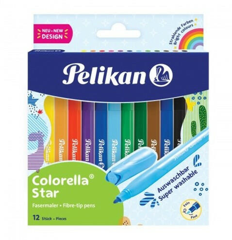 Termékjellemzők: - Colorella Star C302-es filctoll. - 12 szín. - 0,8 mm-es hegyvastagsággal. - Vízbázisú festékkel, mely a legtöbb textilből kimosható. - Biztonsági kupakkal.