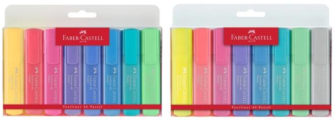 Szövegkiemelő készlet Faber-Castell Pastel 1546 - 8 db | különböző színek A Faber Castell szövegkiemelő készletekkel egyáltalán nem fog unatkozni. Akár lágy pasztell, akár pasztell-fluoreszkáló színeket választ, a szórakozás garantált. Emelje ki ötleteit, húzza alá kulcsszavait, és emeljen ki mindent, ami fontos Önnek. A kiemelők minden kiemelő rajongó számára alka