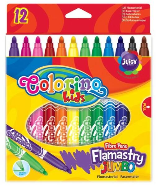 Colorino JUMBO 12db-os filctoll készletKözepes vastagságú filctoll készlet A legtöbb textilből kimosható