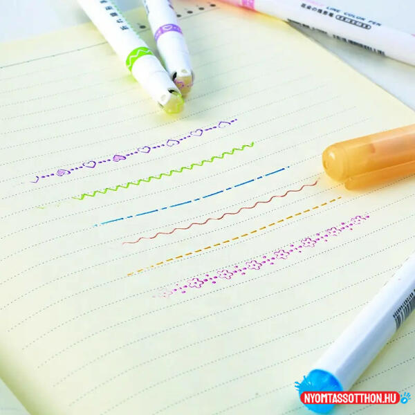 Forradalmi cukiság! Egy mozdulattal görbe kontúr, lineáris pontozott vonal, szivecskés minta, virág, hullám alakú vonal, csillag minta varázsolható a papírra. Kiváló kiemelő toll jegyzetkészítéshez, tanulmányhoz vagy csak a hétköznapi örömért. Ilyen cucca csak a menő csajoknak van.