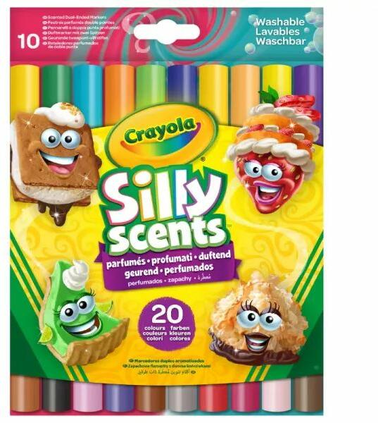A Crayola filceivel mindig öröm az alkotás!A gyerekek rajzolhatnak és kedvükre alkothatnak az illatos filctollakkal, és nem kell izgulni, hogy összefirkálják a kezüket vagy a bútorokat! A filctollak lemoshatóak a felületekrõl. A Crayola filctoll vége nem kopik, nem szálasodik és nem szárad ki. A csomagban található például puncs, szőlő, zöldalma, görögdinnye, mályvacuko