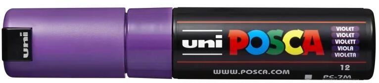 Uni Posca PC-7M LilaPosca egy rendkívül sokoldalú dekormarker. Írásra, rajzolásra, festésre, jelölésre, díszítésre, hobbi tevékenységekhez használható. Műanyagtól kezdve a fém, textil, fa, bőr felületeken is alkalmazható, de az üveg felületeken is kiválóan tapad. Nem üt át a papíron, oldószermentes és szagtalan vízbázisú festéket tartalmaz. Száradás előtt vize
