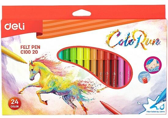 Filctollkészlet, 1,0 mm, DELI Color Run, 24 különböző szín