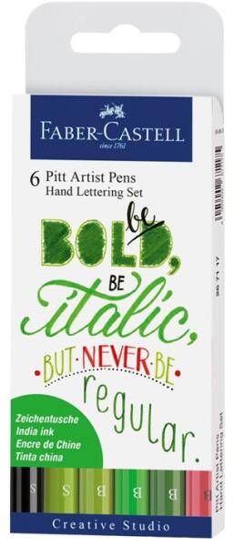 PITT művész filctoll készlet Hand Lettering Bold | 4db A Faber-Castell a tintával való rajzolás minden előnyét egy modern és egyszerű, eldobható Pitt artist pen tollban egyesítette. A kiváló minőségű ecsethegy gyakori hajlítás esetén is megőrzi funkcionalitását anélkül, hogy megsérülne. A praktikus Hand Lettering PITT tinta marker készletben 6 tollat talál különböz