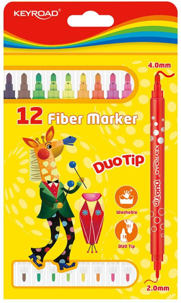 Élesebb vonalak, erősebb kapcsolatok. kétvégű iskolai filctollak (2 mm és 4mm hegy vastagság) tökéletesek diákok számára 12 különböző élénk szín (fekete, barna, sötétzöld, világoszöld, citromsárga, narancssárga, piros, rózsaszín, világoskék, sötétkék, lila, ciklámen) biztonsági kupak a fulladás lehetséges kockázatának megelőzésére ruhából könnyedén kim