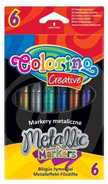 Különleges, fémes színű alkotásokat készíthettek a Colorino fémes hatású filcek segítségével. A színek sejtelmesen csillognak, de emellett gyönyörűen élénkek. Tovább növelhetitek a művészi alkotás hatását, ha fekete papírra rajzoltok vele, próbáljátok ki az összes színnel!